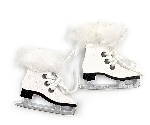 Koristeluistimet mini koristeluun ja minimaailman rakentamiseen. Pakkaus sisältää yhden parin puisia luistimia nauhoilla sekä koristeilla.